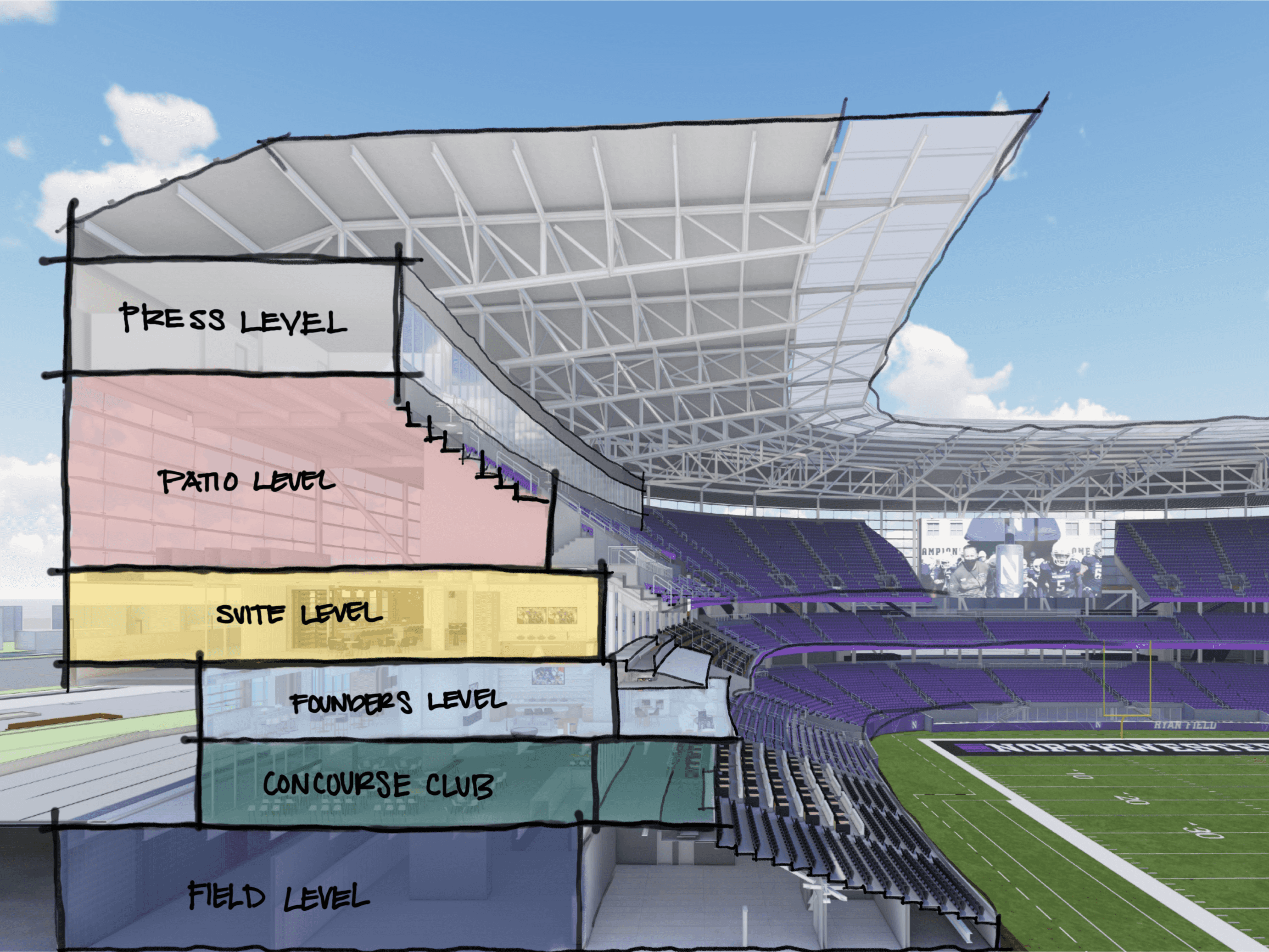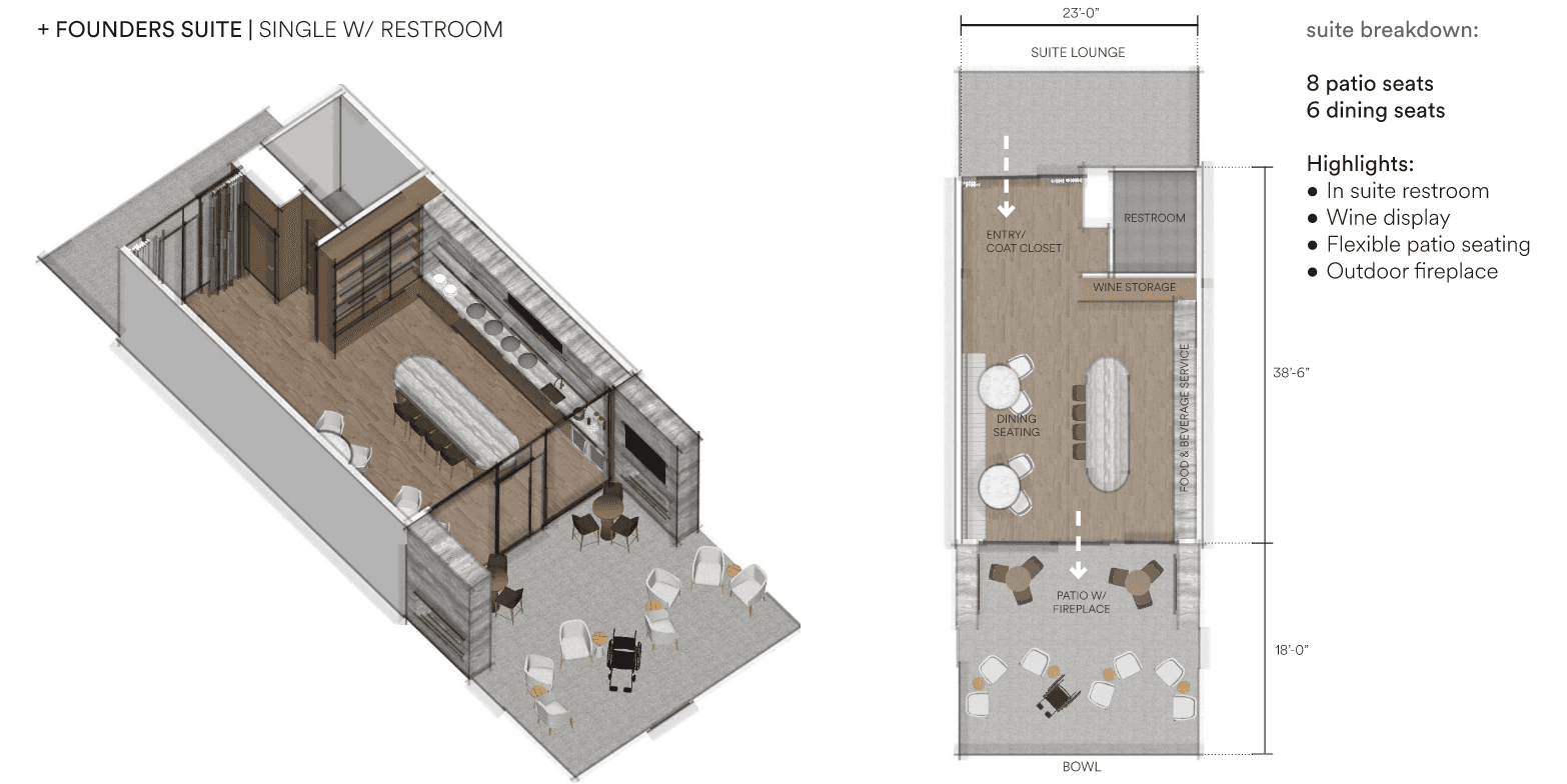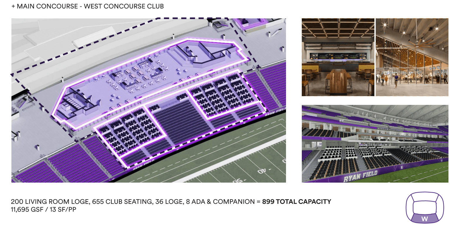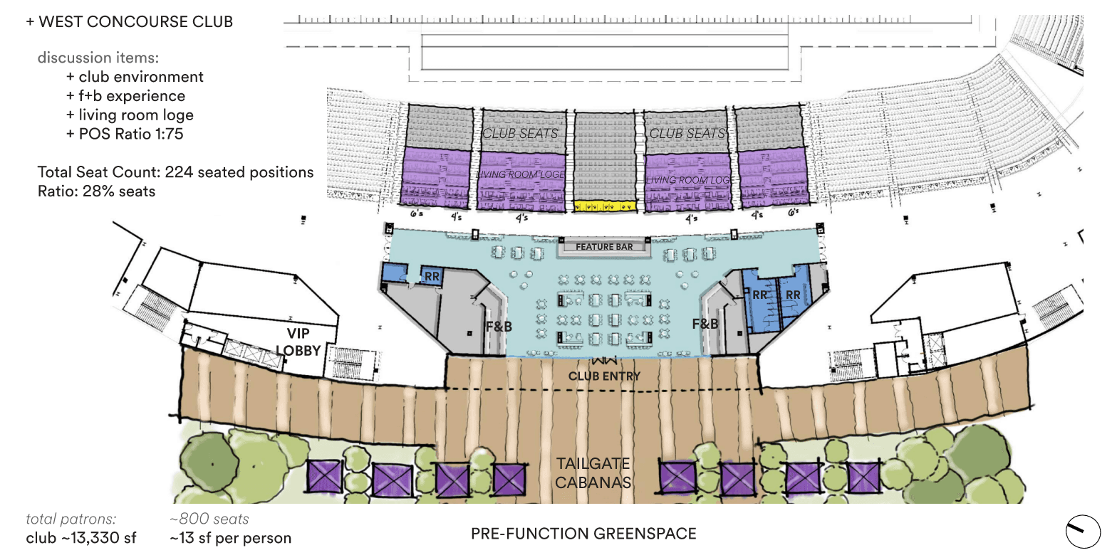 My role as the Senior Interior Designer for Ryan Field through the Design Development phase, establishing the overall design concept and storytelling narrative for the stadium while leading the planning and design of premium club environments, fan amenities, and player spaces. Developed interior floor plans, circulation strategies, and conceptual sketches that translated vision into buildable design and informed high-quality renderings of the club spaces, shaping the elevated game-day experience for fans, student athletes, and the community.