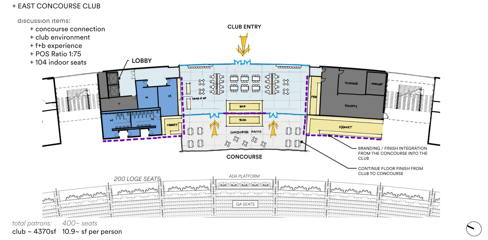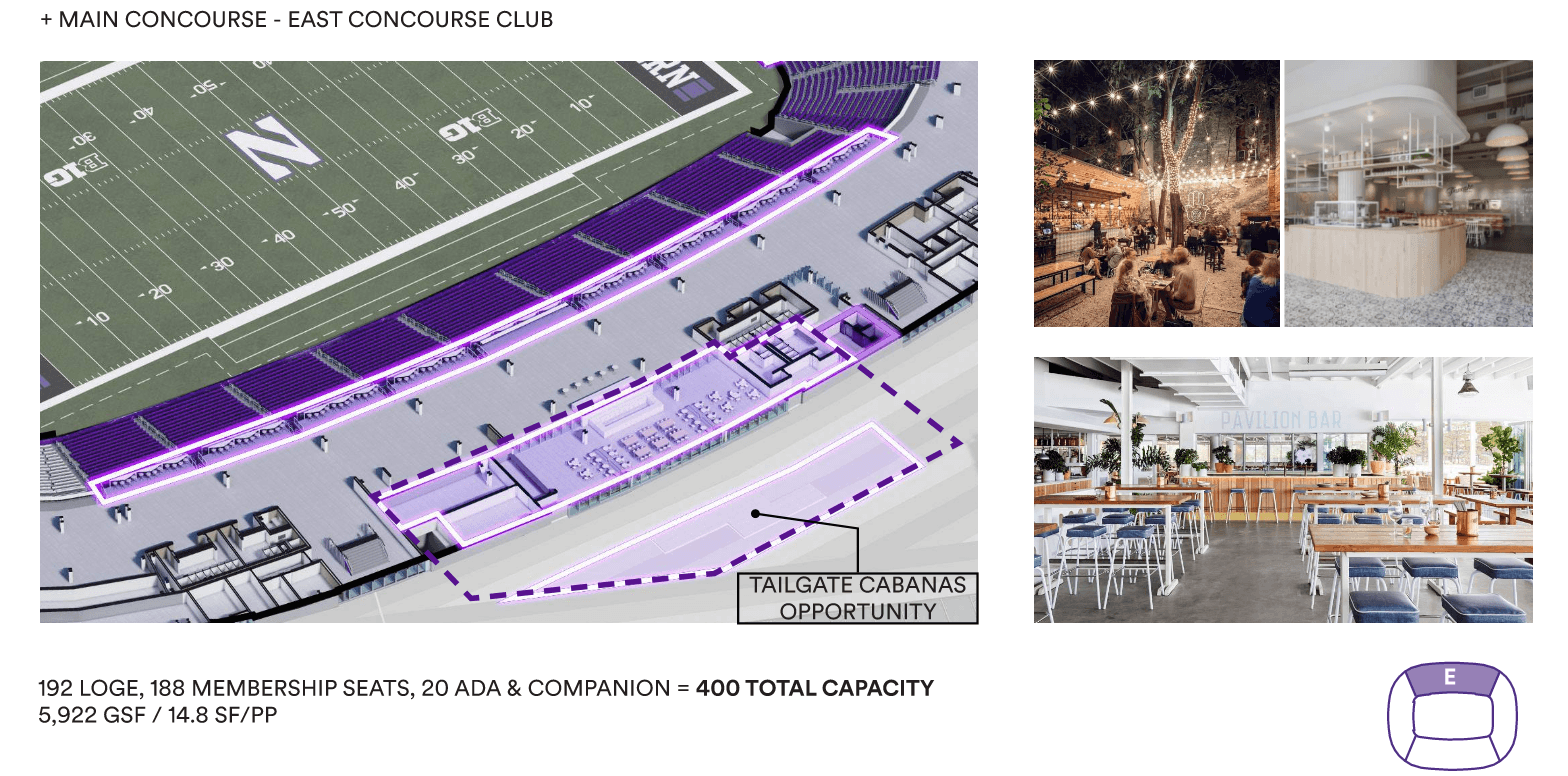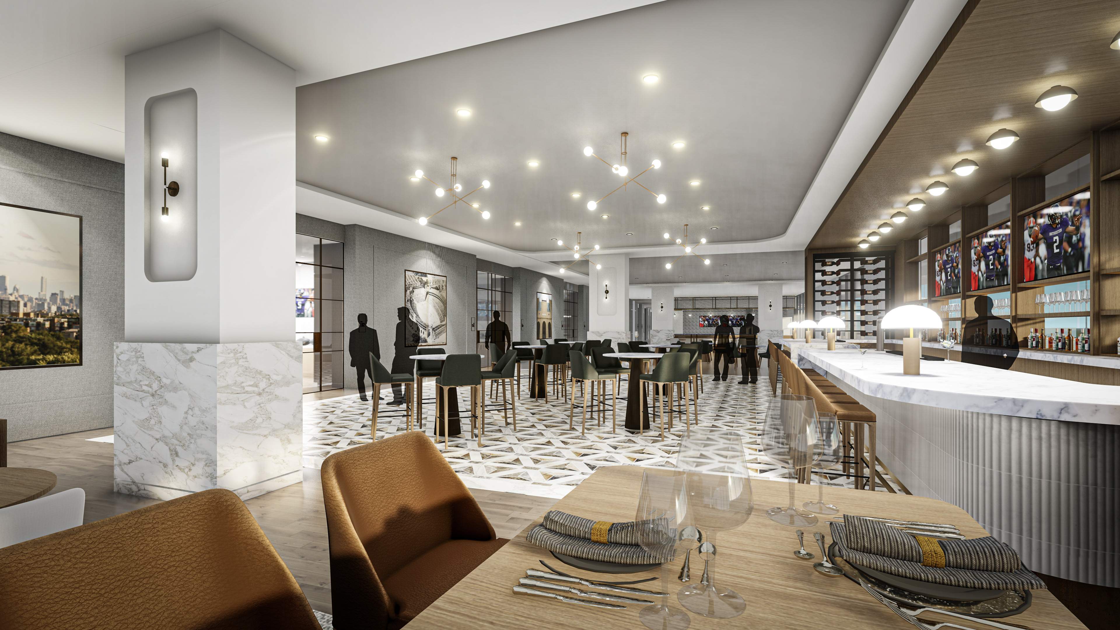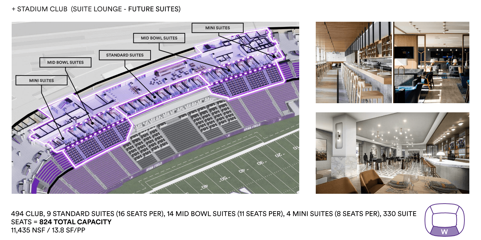 My role as the Senior Interior Designer for Ryan Field through the Design Development phase, establishing the overall design concept and storytelling narrative for the stadium while leading the planning and design of premium club environments, fan amenities, and player spaces. Developed interior floor plans, circulation strategies, and conceptual sketches that translated vision into buildable design and informed high-quality renderings of the club spaces, shaping the elevated game-day experience for fans, student athletes, and the community.