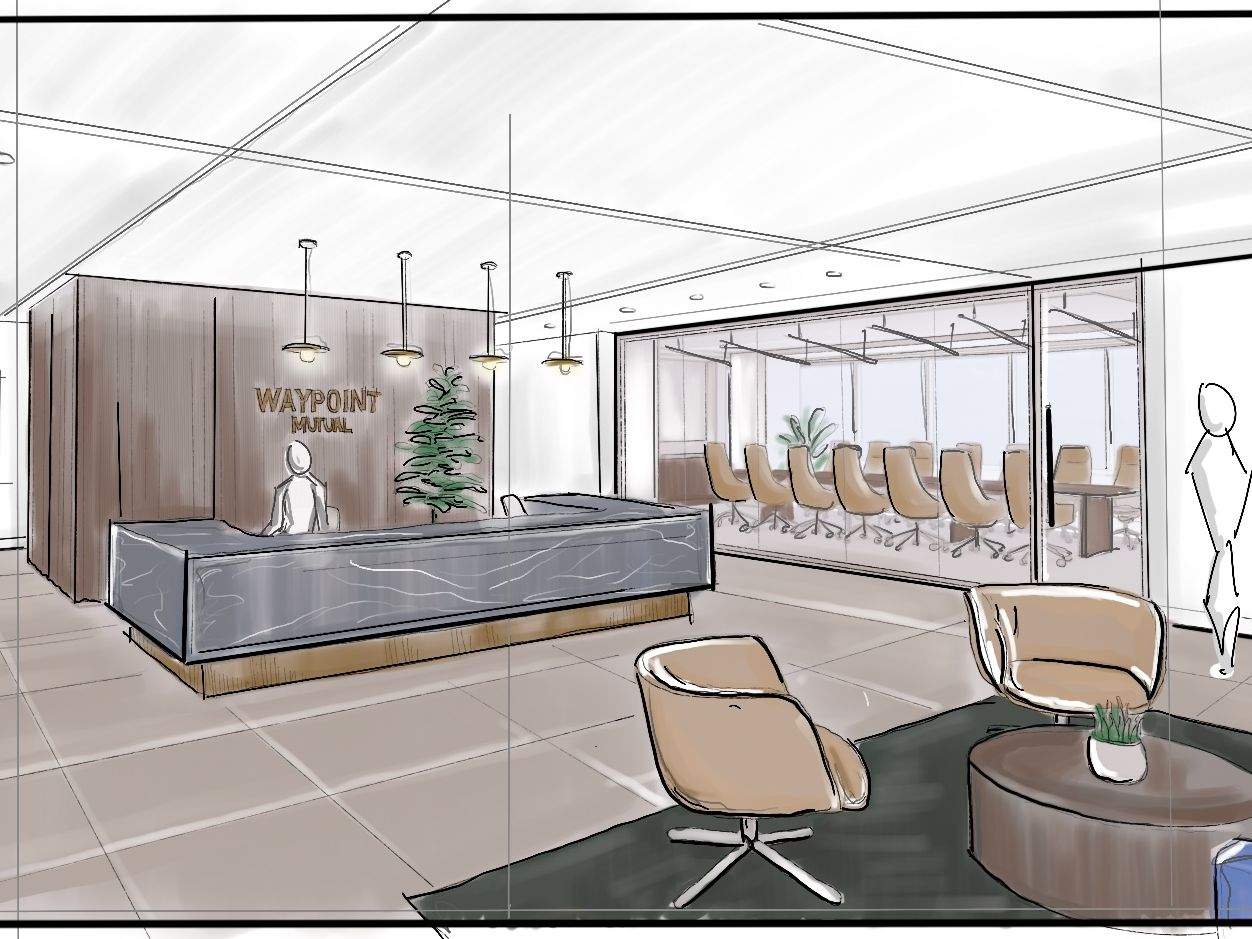 Waypoint Mutual, previously known as Midwest Builders Casualty Group, required a completely reimagined layout to support their significant growth. Taking inspiration from the company’s roots as an insurance provider for Midwest construction companies, the new design reflects the brand’s history by implementing raw construction materials like wood, steel, and natural stone.