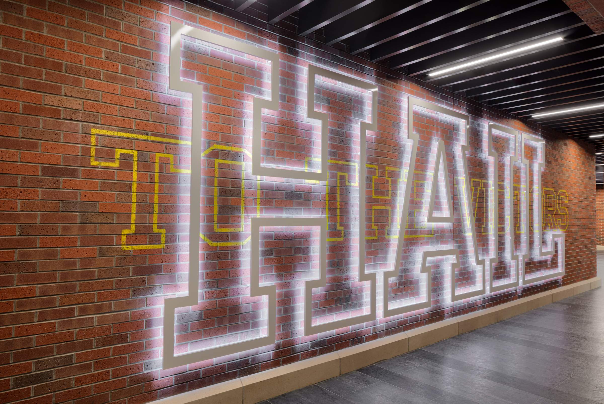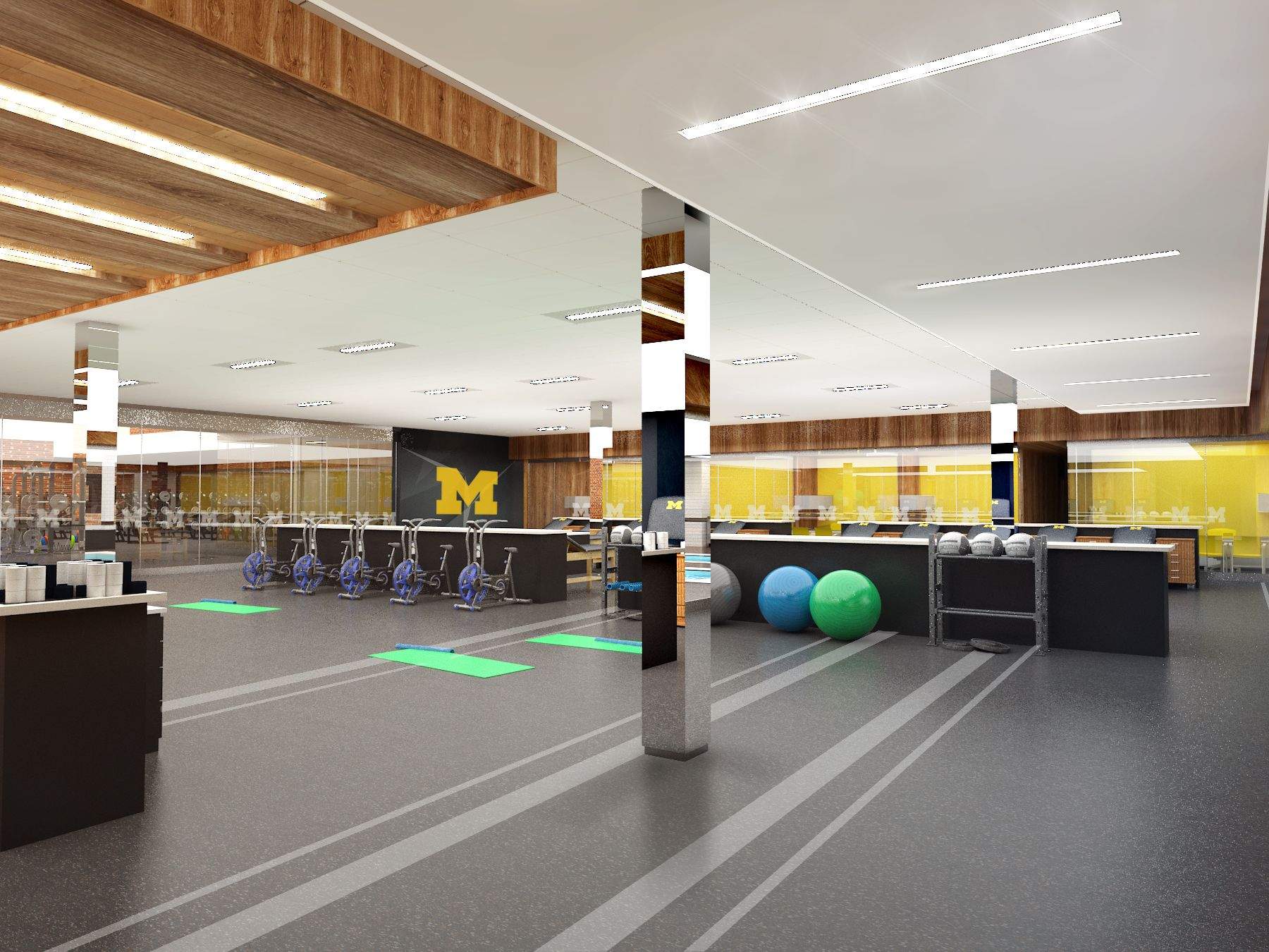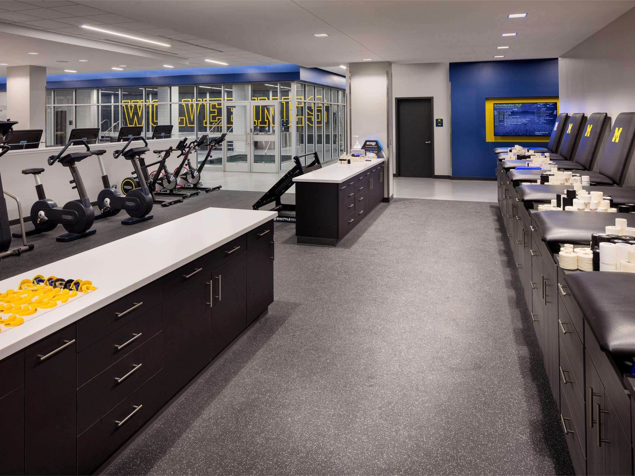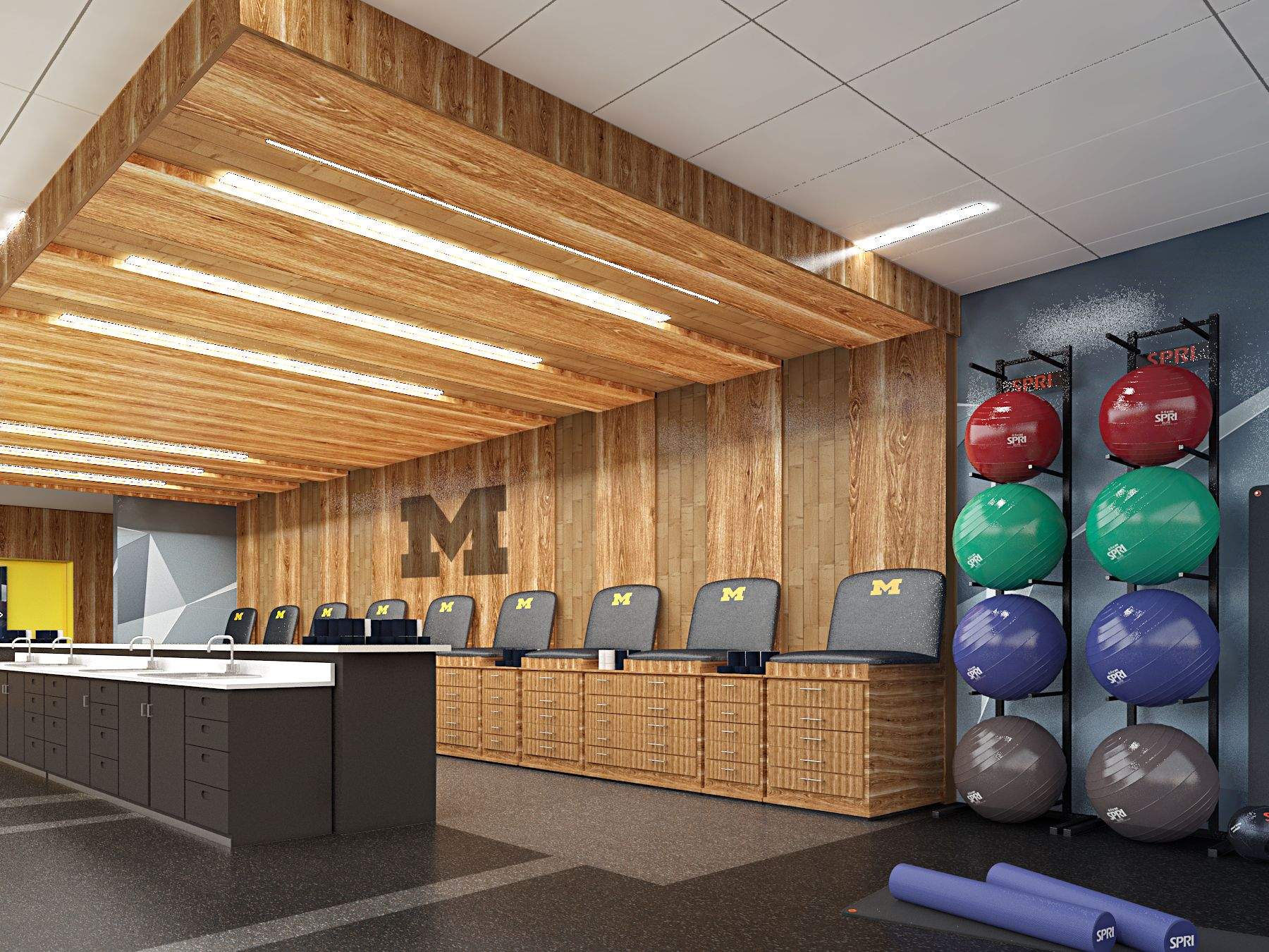 The renovation and expansion of Schembechler Hall transformed the University of Michigan Football Performance Center into a comprehensive, high-performance training environment. The project introduced a 33,000-square-foot strength and conditioning facility featuring a state-of-the-art weight room and plyometric training hill, alongside upgraded sports medicine and recovery spaces. New hydrotherapy and cryotherapy areas support athlete wellness, while an integrated nutrition zone, expanded equipment areas, and modernized team meeting and position rooms enhance daily operations. Together, the improvements create a holistic performance hub designed to support training, recovery, and collaboration at the highest collegiate level.