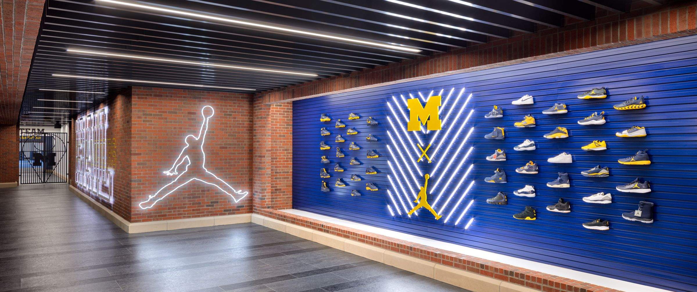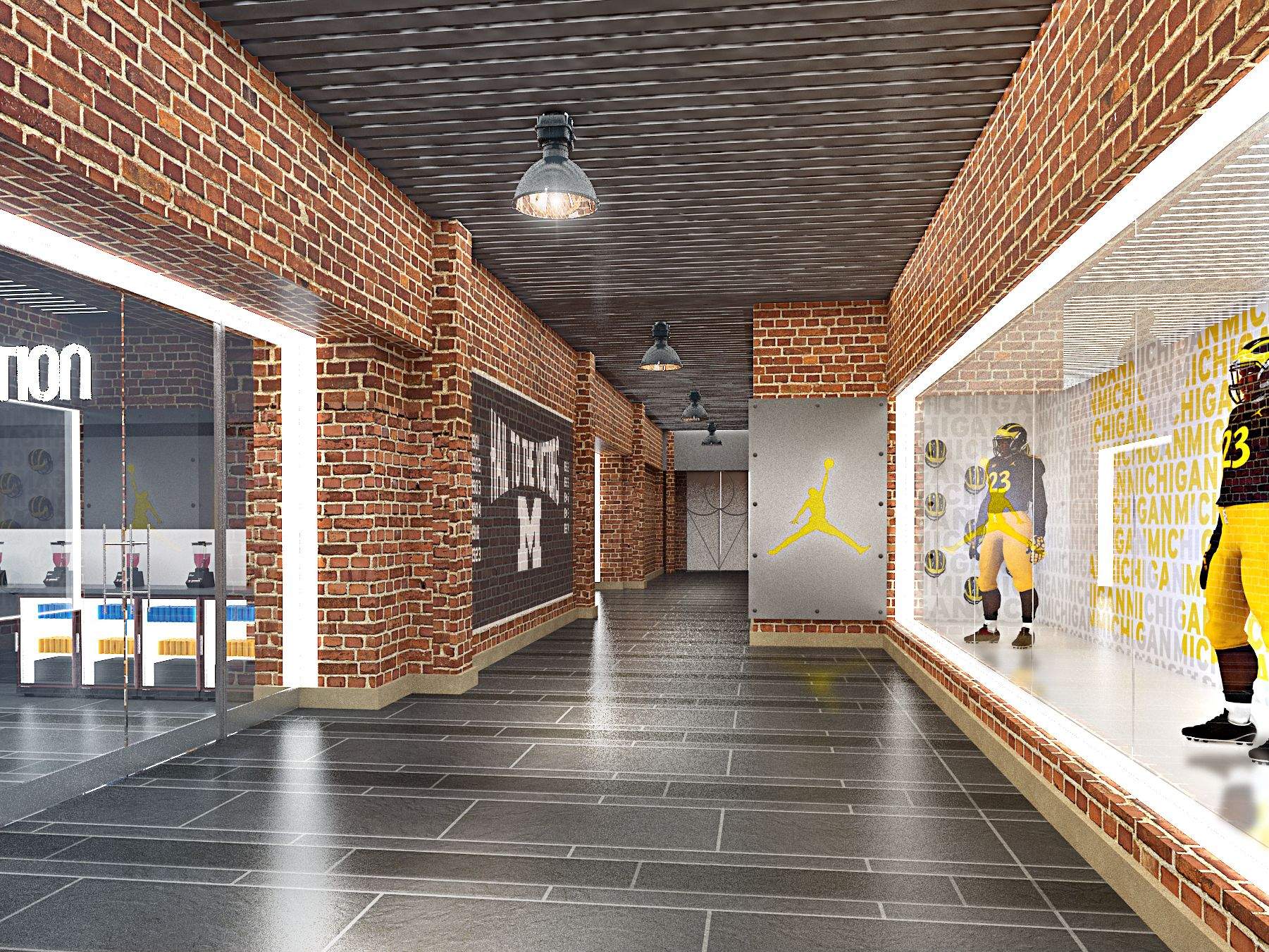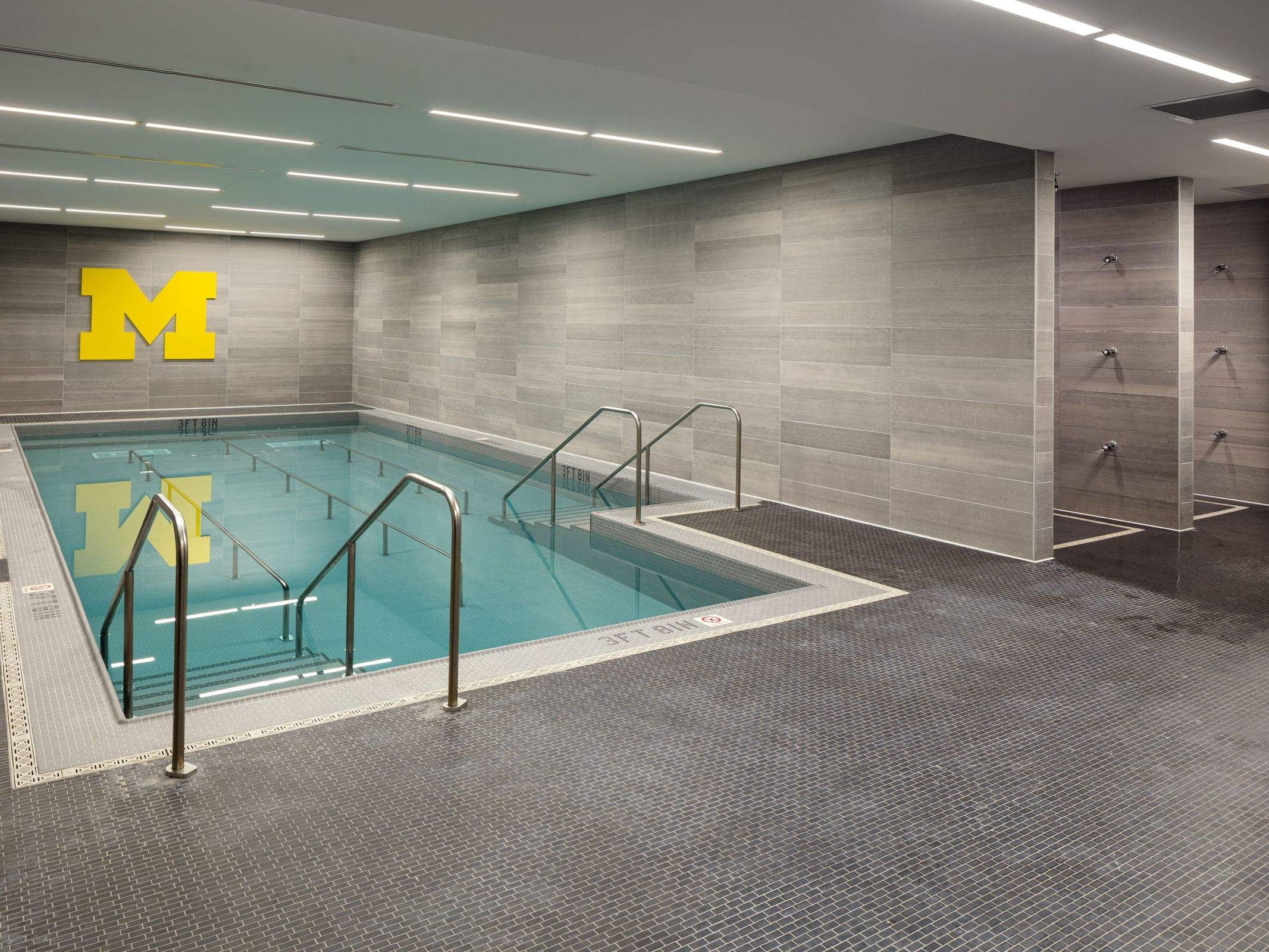 My role on the project was lead interior designer for the University of Michigan Football Performance Center, guiding the design vision and execution from concept through documentation and construction administration to ensure the project was delivered as intended. The project aimed to create a state-of-the-art, high-performance environment aligned with the program’s operational needs and team culture. Key spaces included a one-of-a-kind weight room with an overlooking basketball court and a custom hydrotherapy suite with integrated football equipment storage. The result is a unique facility that supports excellence for both coaching staff and athletes.